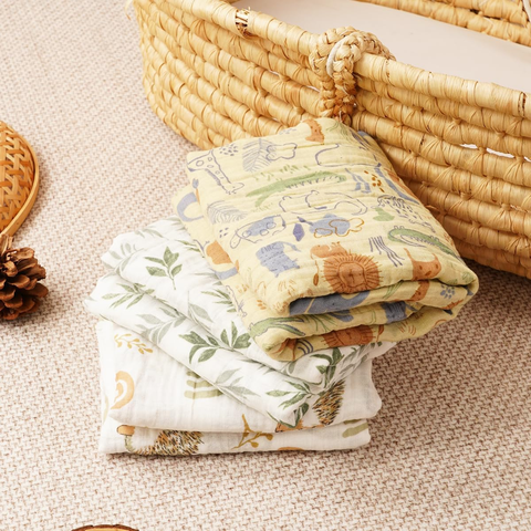 사용자 정의 인쇄 유기농 대나무 면 모슬린 아기 담요 부드러운 통기성 신생아 아기 모슬린 포대기 받는 담요